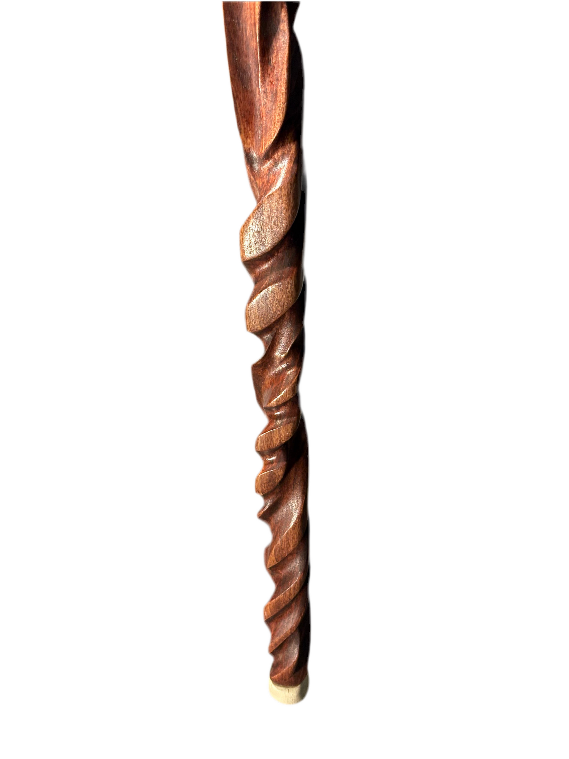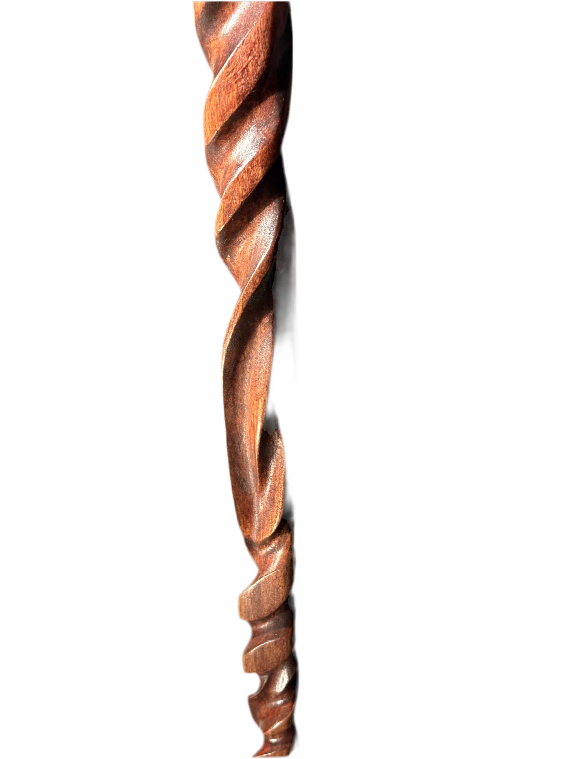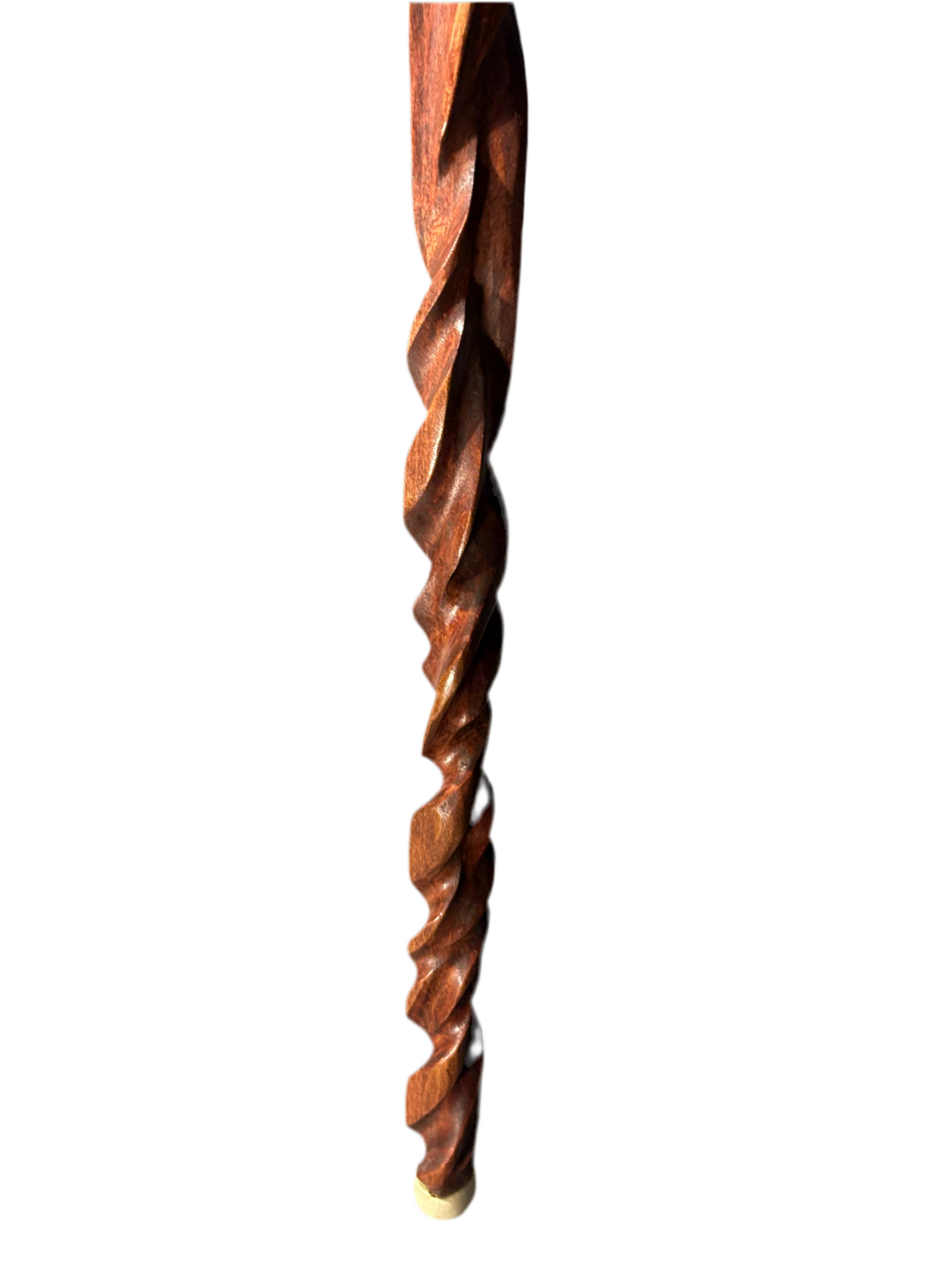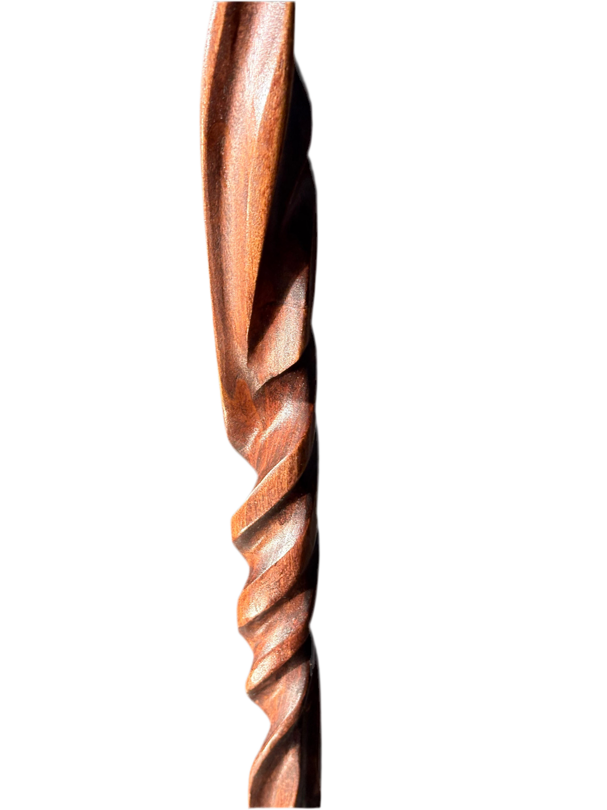 Igni- A graceful staff with a warm reddish brown twist, crowned by a bold red leather handle. Elegant, fiery, and full of character- crafted to stand out with style. Igni is made with poplar and stands at 53 1/4 inch’s tall and is 1 1/2 by 1 1/2 inch’s wide.