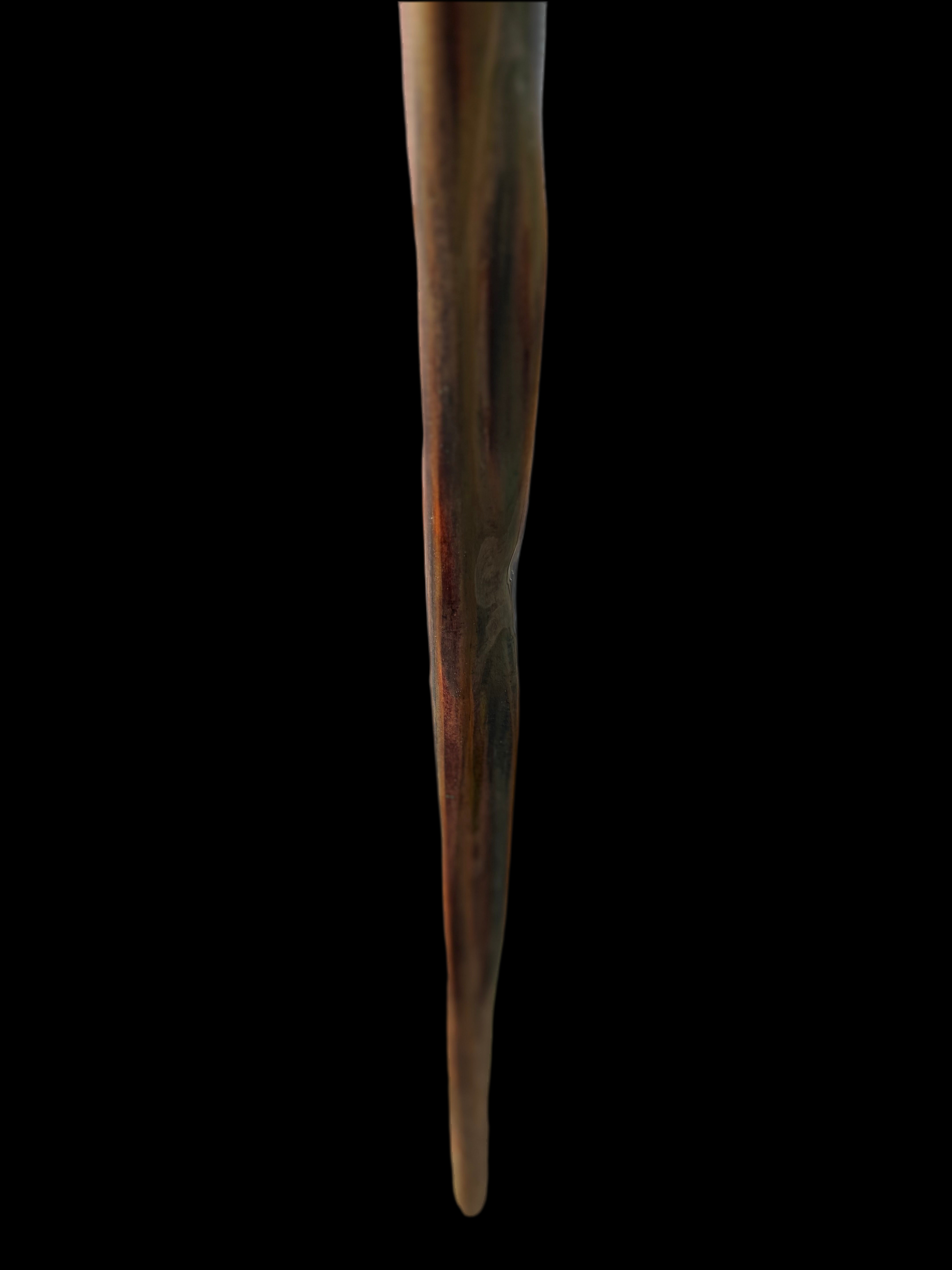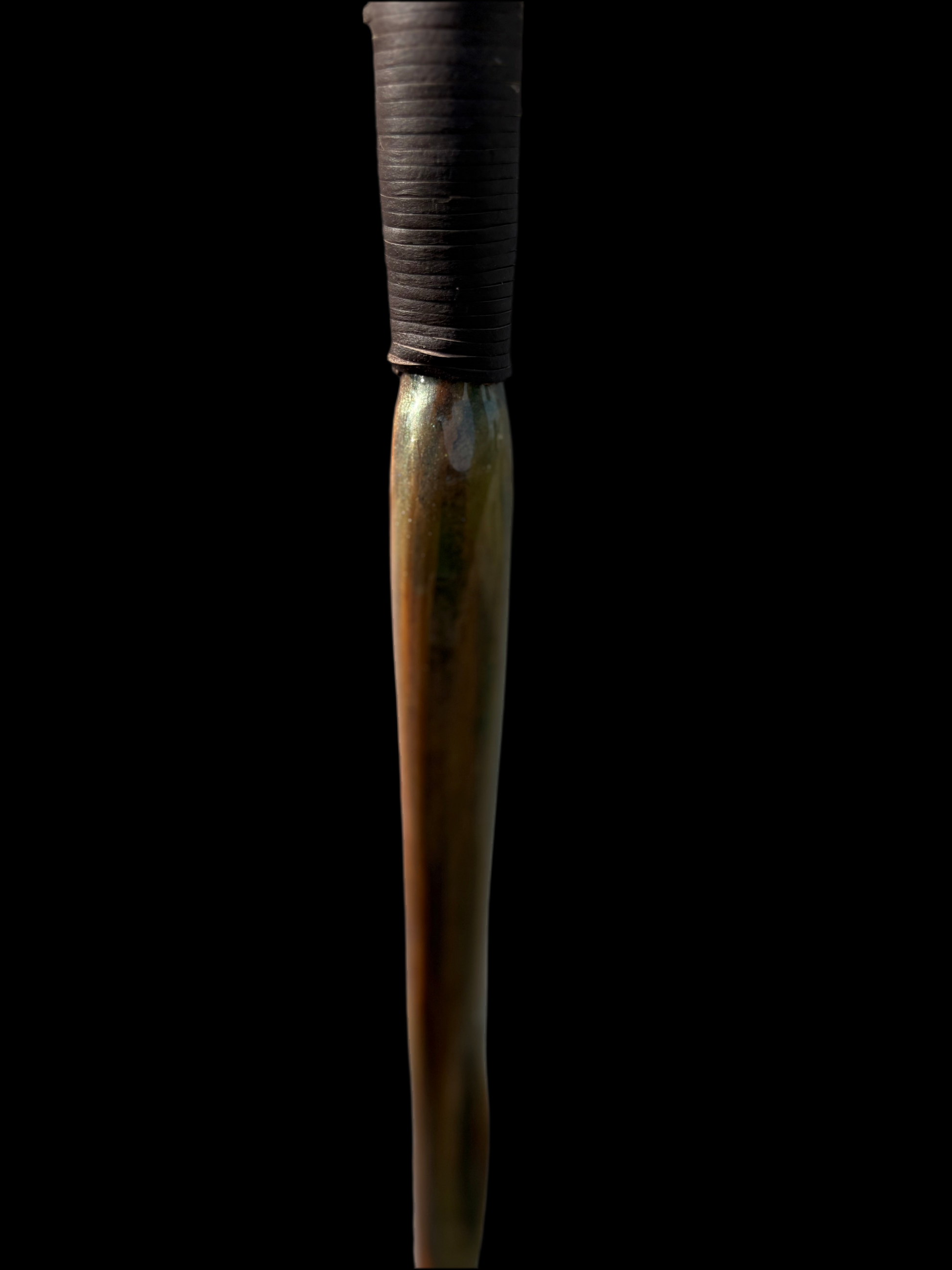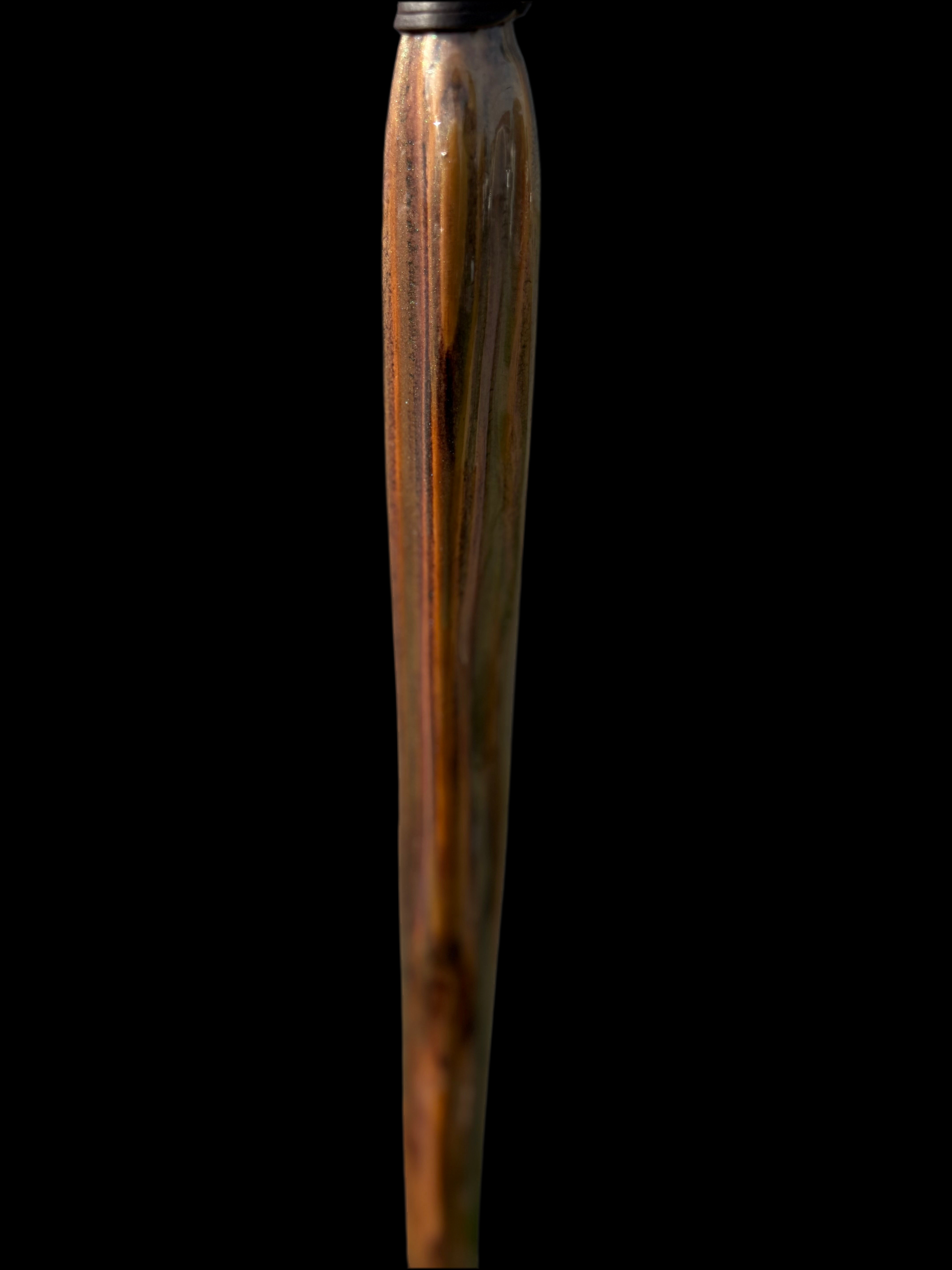 Enerald whisperer- quiet power flows through this hand crafted staff that features a smooth wood grain and translucent green epoxy that glows like forest light, and caped with with a smooth quartz stone.emerald whisperer grows to 51 1/2 inches tall and is 1 1/4 by 1 1/4 inches wide.
