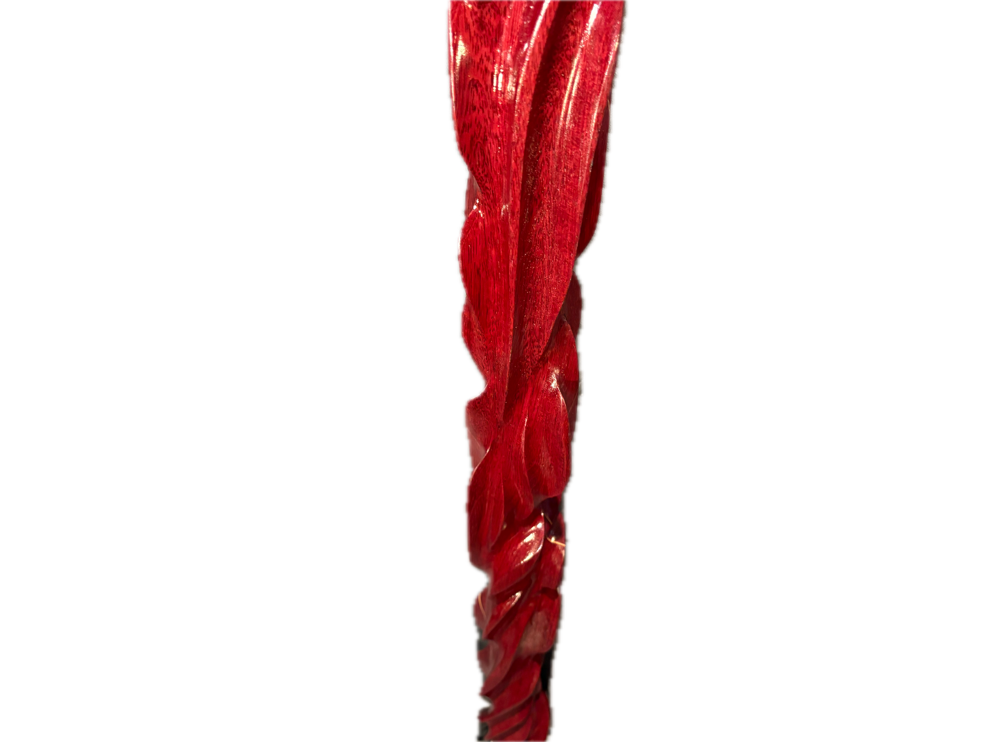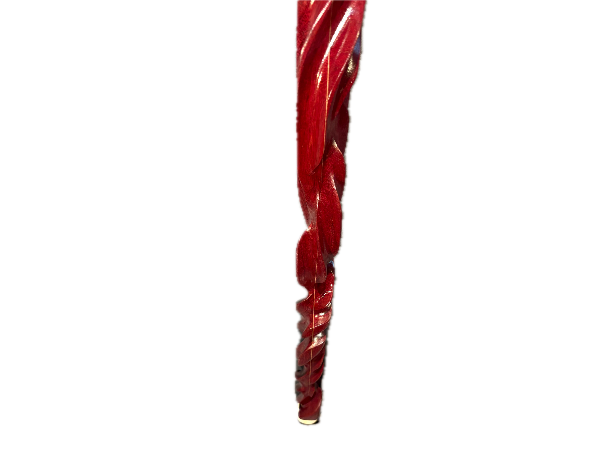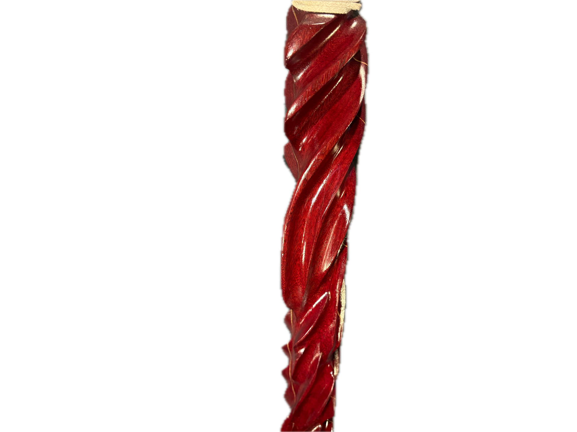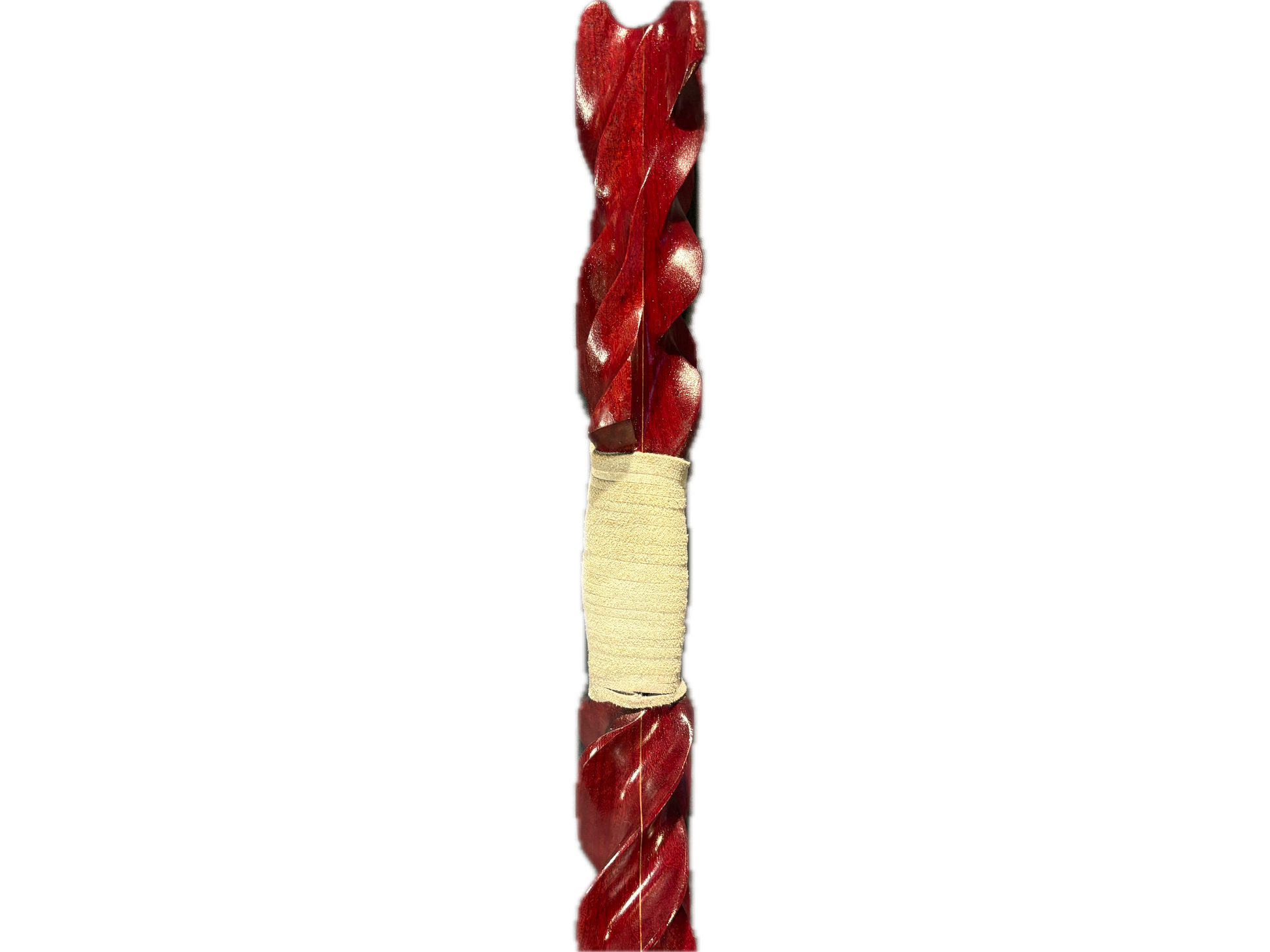 A striking staff crafted from genuine Purple Heart wood , showcasing a deep , vibrant plum hue and a beautiful twisted design. Rich in color and character, it’s finely polished to reveal the natural luster of the grain-bold , refined, and built to leave an impression with anyone that sees you with this peice of art. This Purple Heart staff is 51 inches tall.