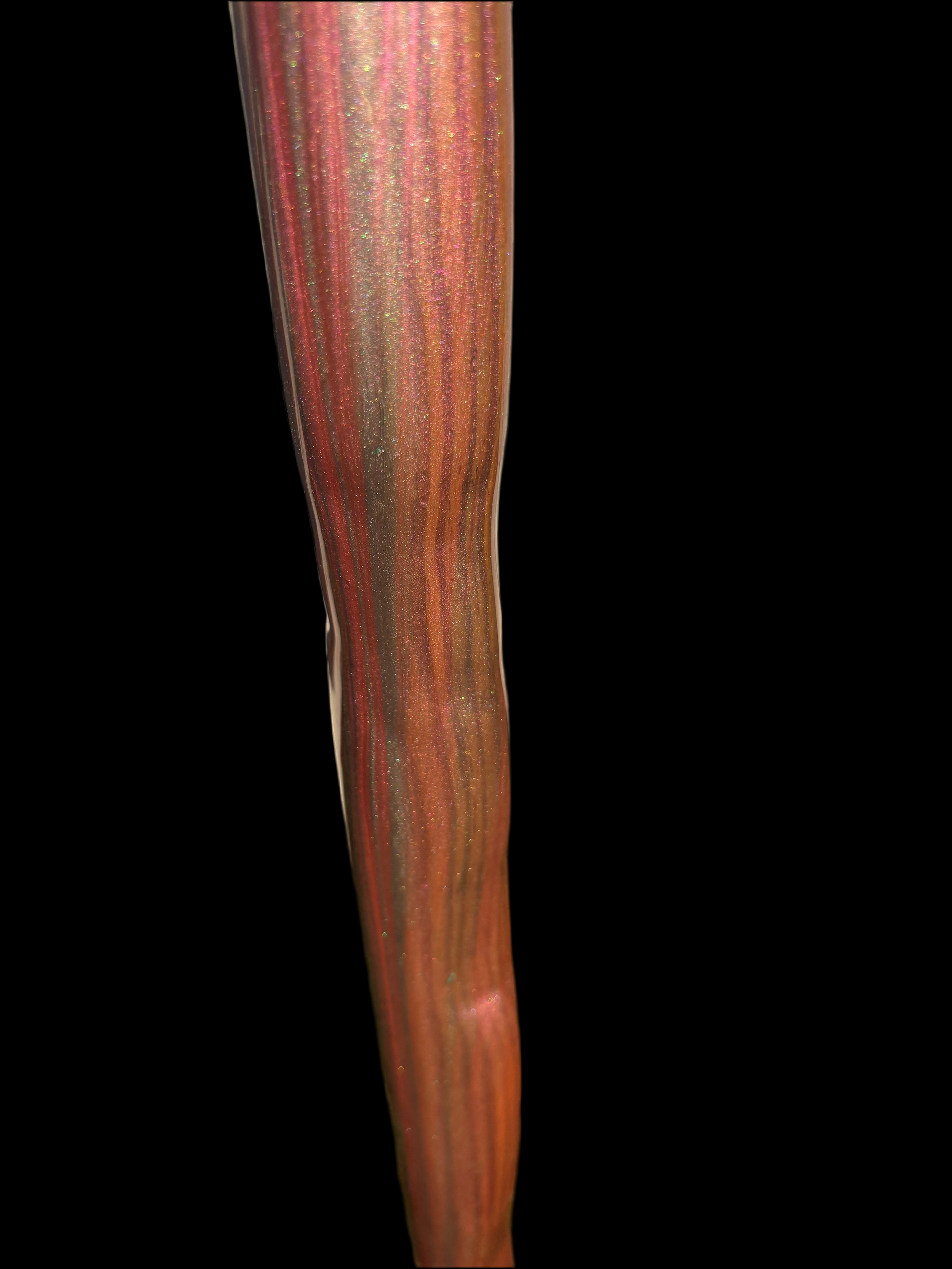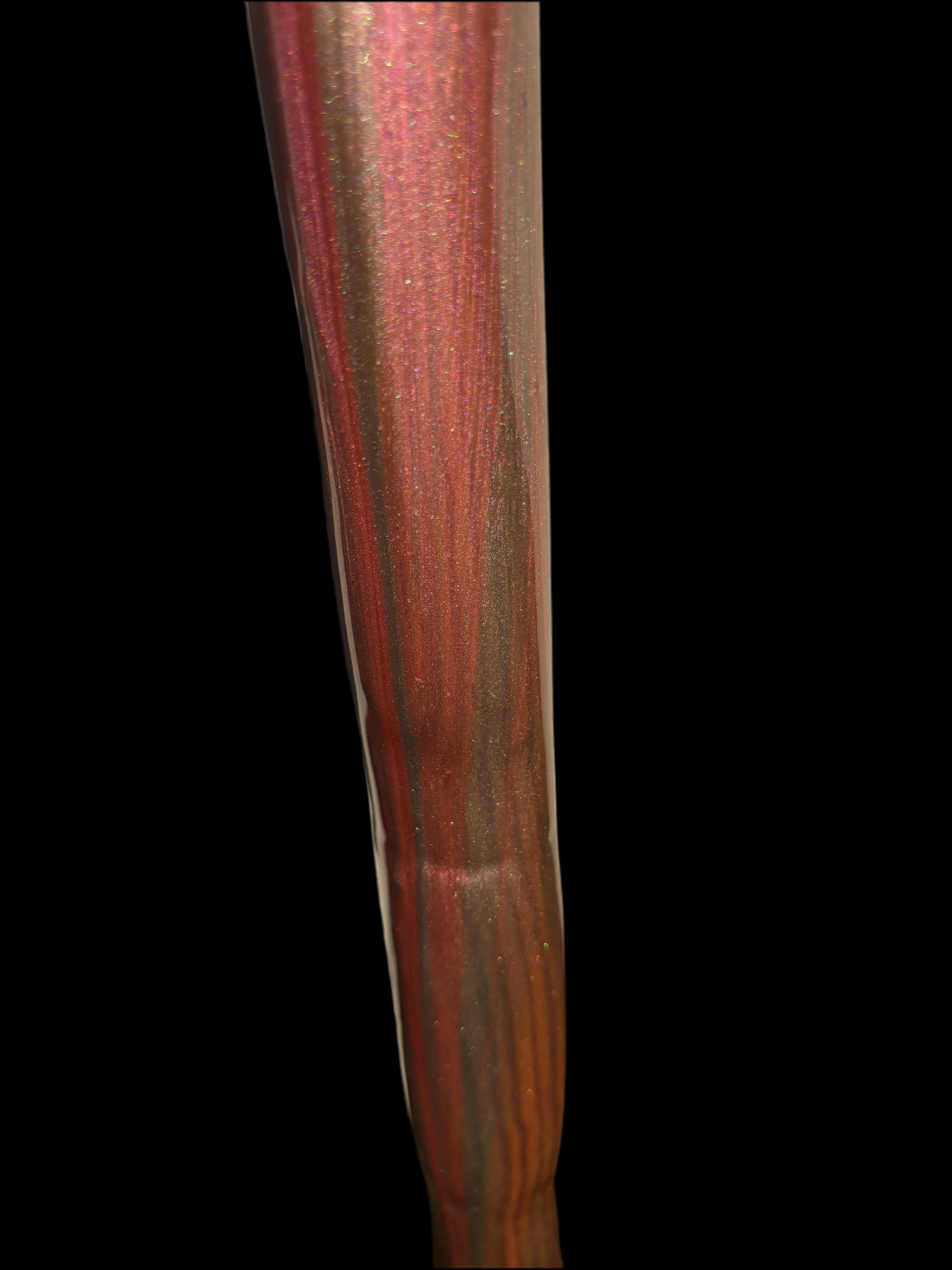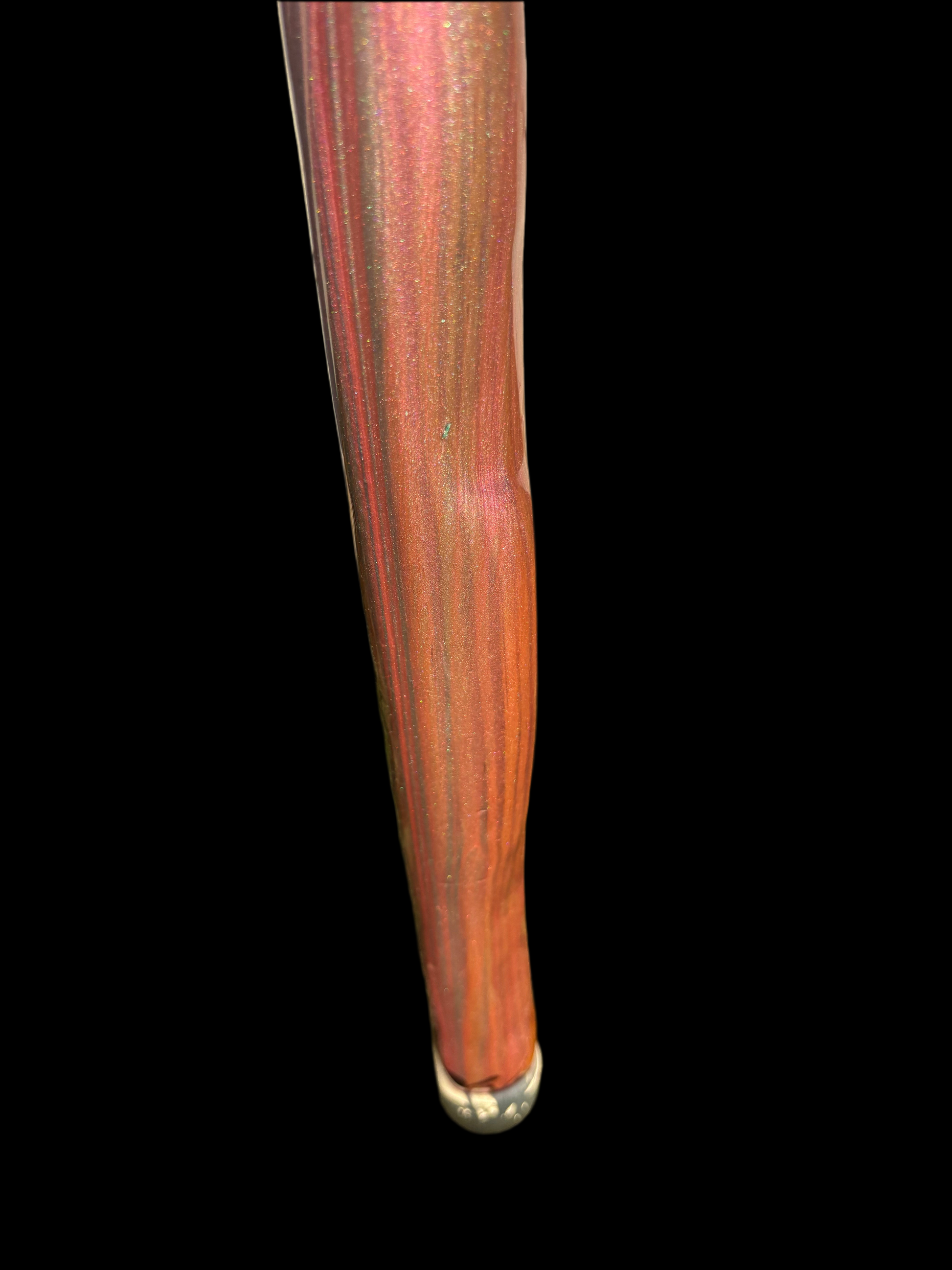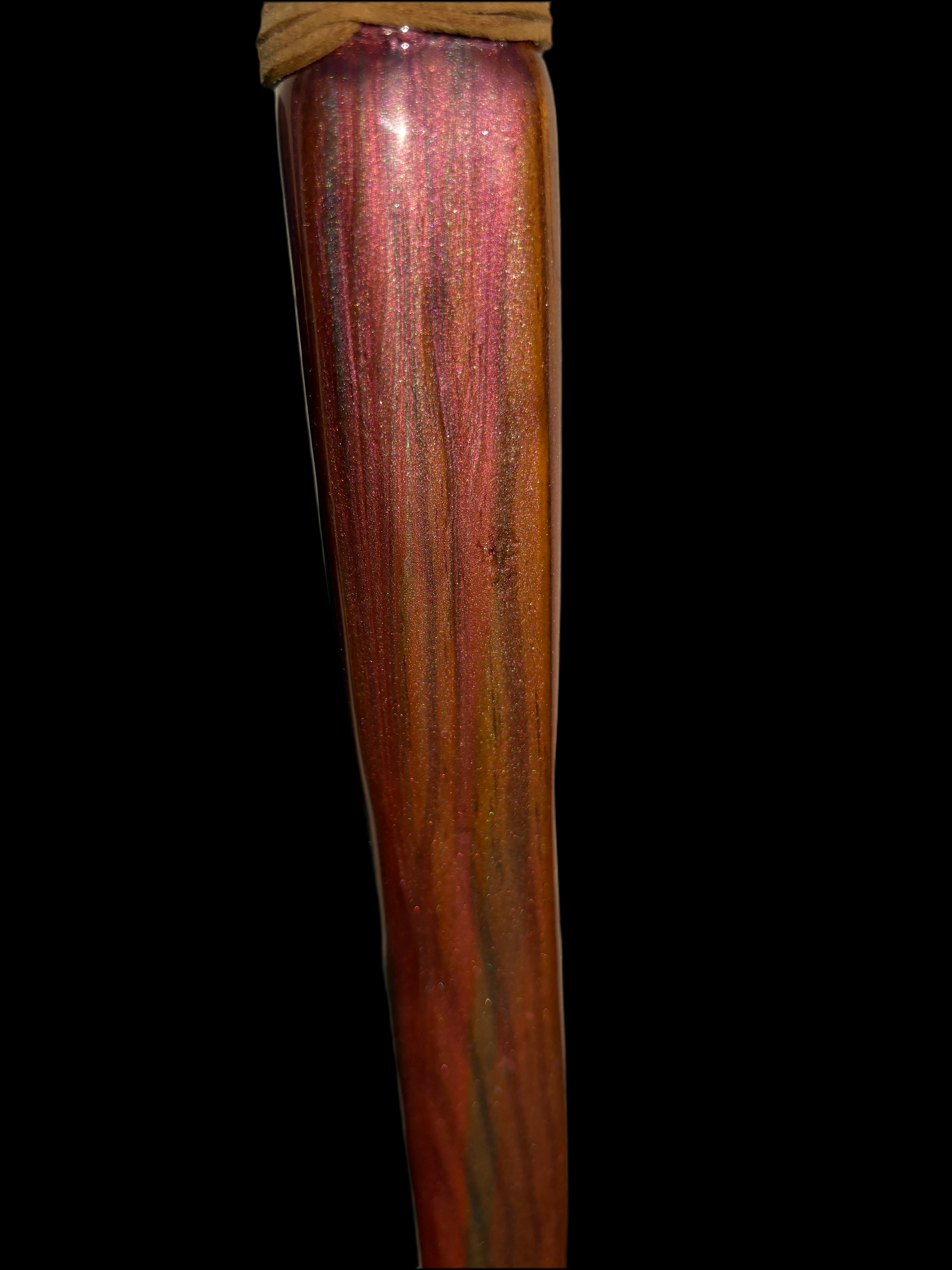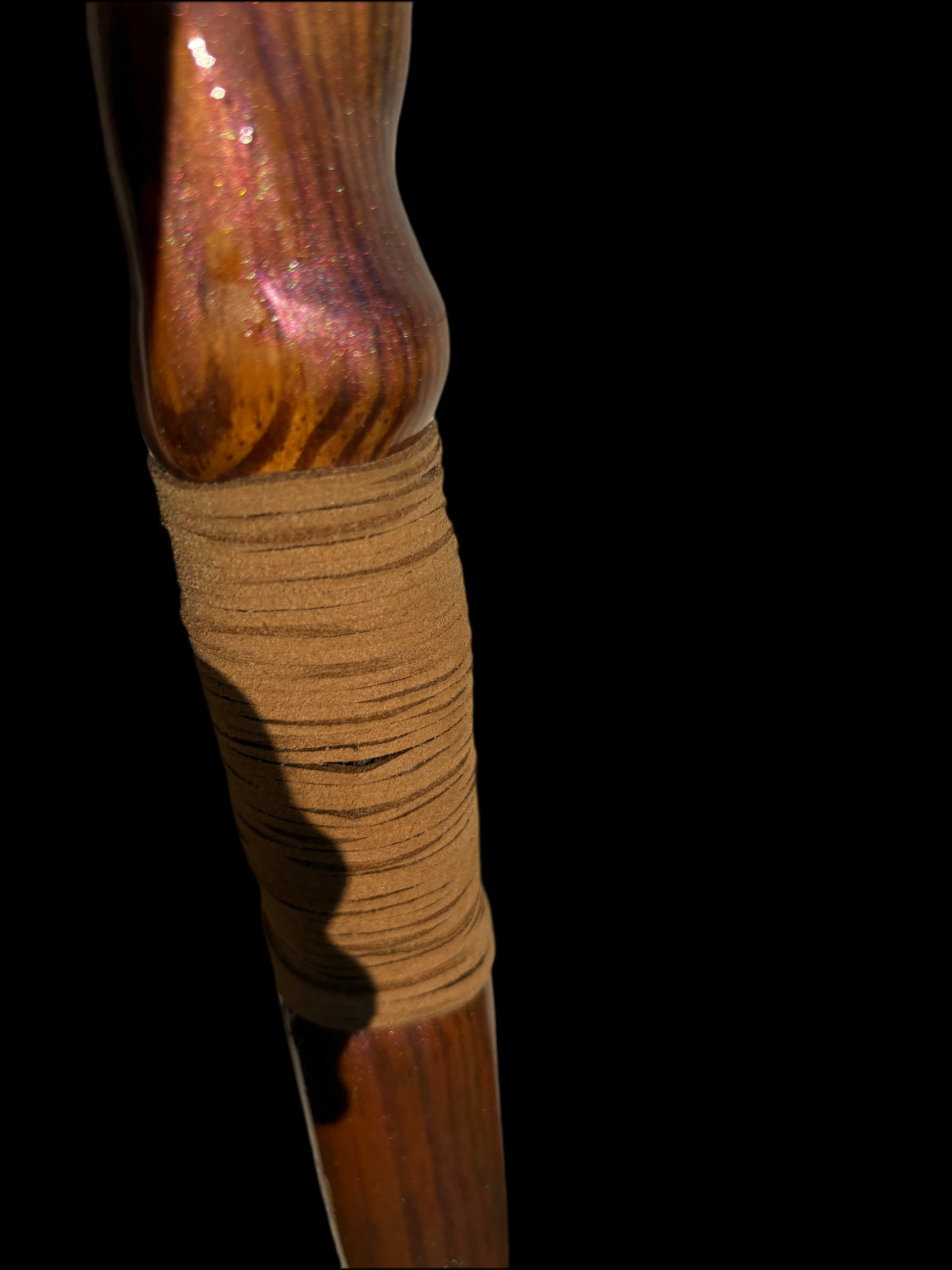 Rose trail- glittered compass staff. A luminous blend of elegance and adventure. This handcrafted staff features a transparent pink epoxy finish that shimmers with every step. Rose trail is 44 inches tall and 1 1/4 by 1 1/4 inches wide.