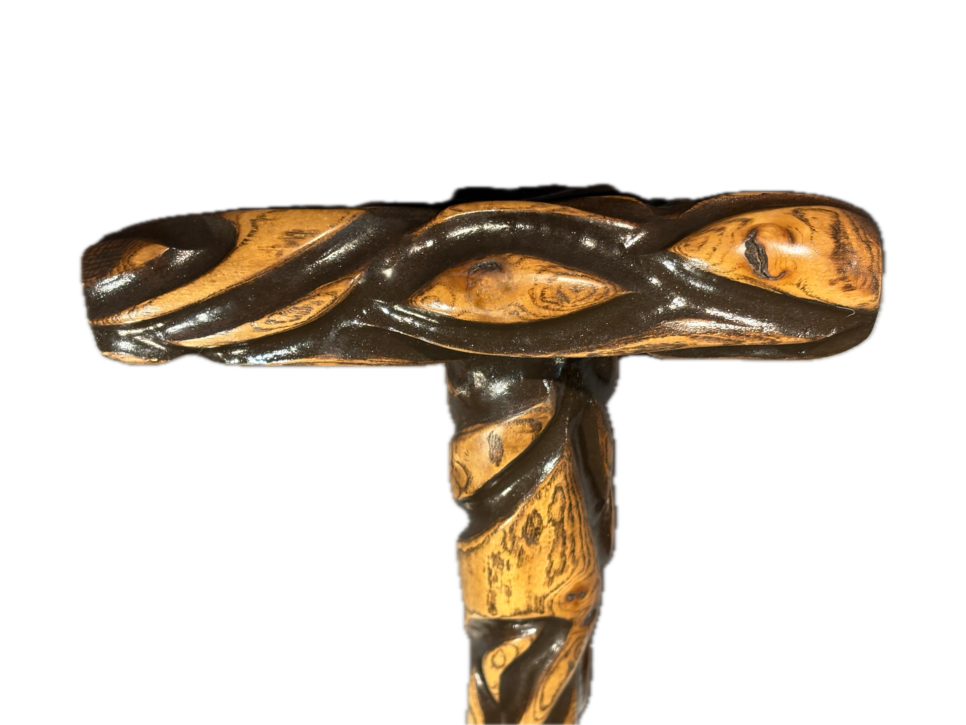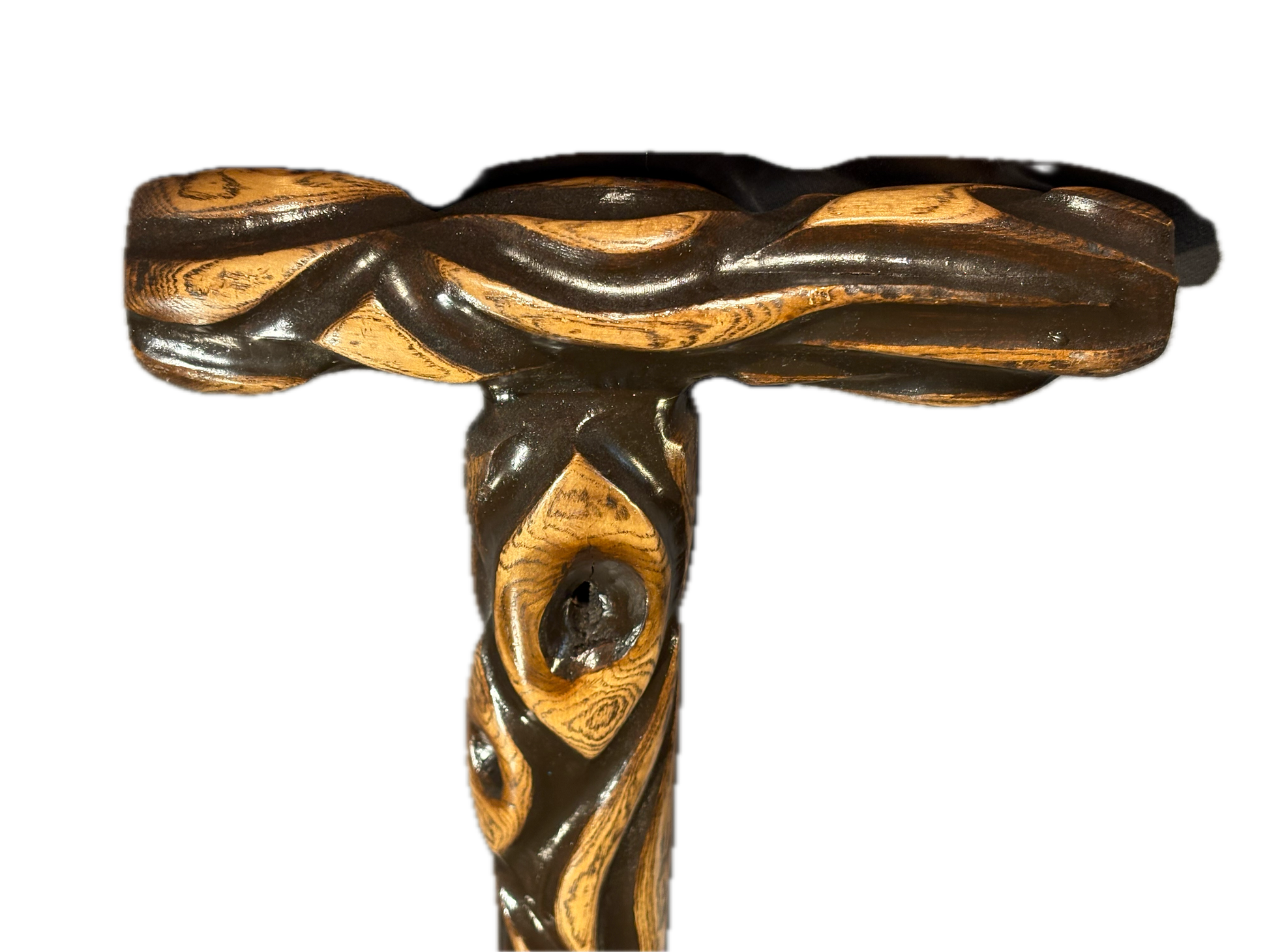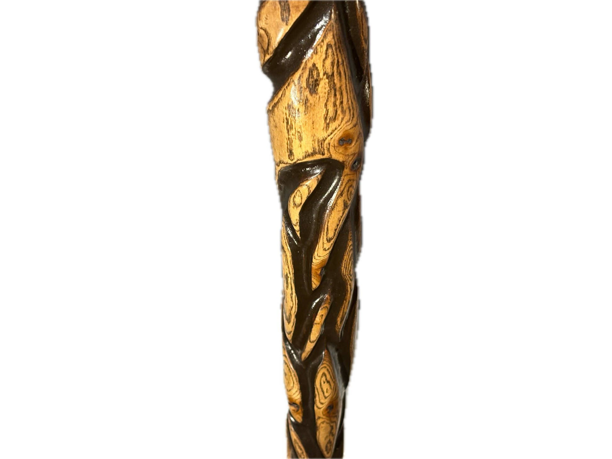 Titian - Sculpted and sleek, this handcrafted cane blends symmetry with statement. It’s twisted silhouette and bold tonal contrast make it an eye-catching piece for those who appreciate form, balance, and quiet drama. Titian stands at32 1/4 inches tall and is 2 1/4 by 2 1/4 inches wide.